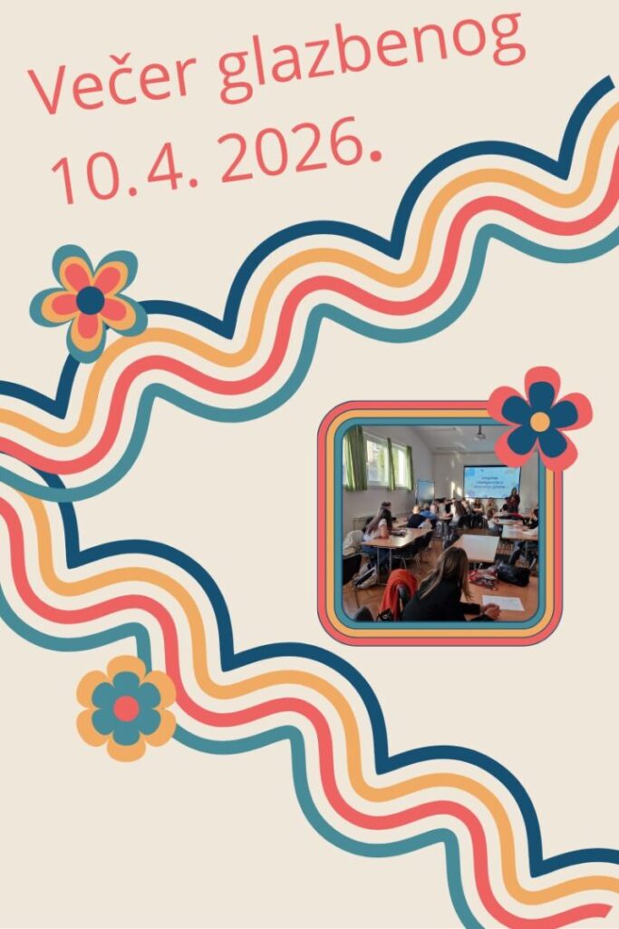 Na četvrtoj večeri projekta „Stvaram bolji (školski) svijet“, Glazbena skupina sačinjena od šestero učenika iz 8. c i d razreda pod mentorstvom prof. glazbene kulture Karmen Širović prezentirala je 10. travnja u školskoj knjižnici kako skladati uz pomoć umjetne inteligencije.