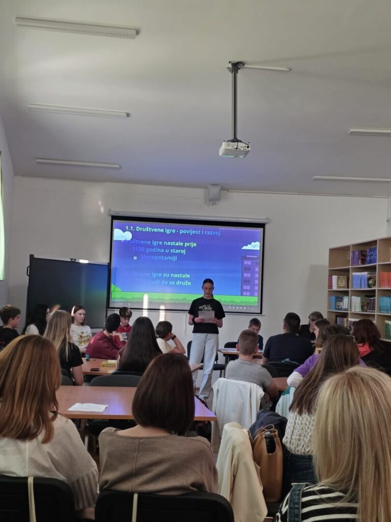 Središnji dio projektnih aktivnosti odnosio se na izradu društvenih igara primjenom umjetne inteligencije. Učenici su povezali tradiciju i suvremenu tehnologiju te pokazali da se AI može koristiti kao alat za kreativnost, a ne zamjena za igru i druženje. Također, istražili su i ulogu igre u dječjoj književnosti na primjerima klasika dječje književnosti kao što su romani Mate Lovraka Družba Pere Kvržice i Vlak u snijegu. Večer je završila kahoot kvizom i igrom labirinta te podjelom nagrada najuspješnijima.